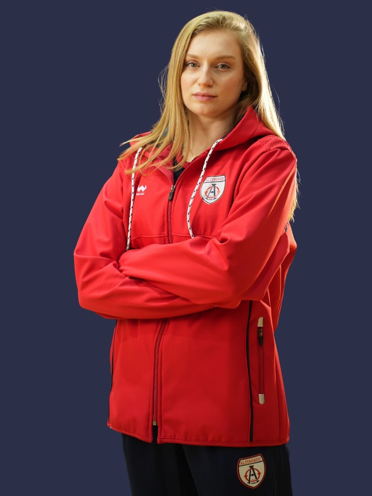 Fermuarlı tasarımı ve ayarlanabilir kapüşonu ile pratik bir kullanım sunarken, göğüste yer alan Altınordu arması ve sırt bölümündeki “Altınordu Voleybol” baskısı kulüp kimliğini güçlü biçimde vurgular. Hafif yapısı sayesinde hareket özgürlüğünden ödün verişmez, sportif ve dinamik bir görünüm kazandırır.